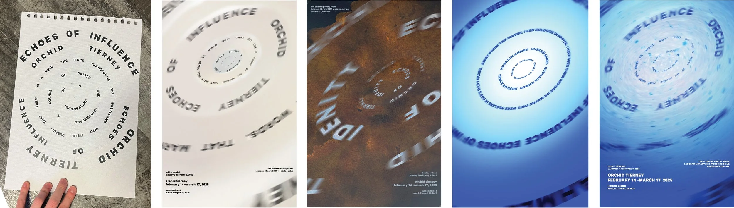 The circular arrangement of text, blurred into motion, was designed to suggest both an echo and a ripple. This visual form mirrors how Ahmed’s words extend outward, creating waves of influence that carry his message forward through time.