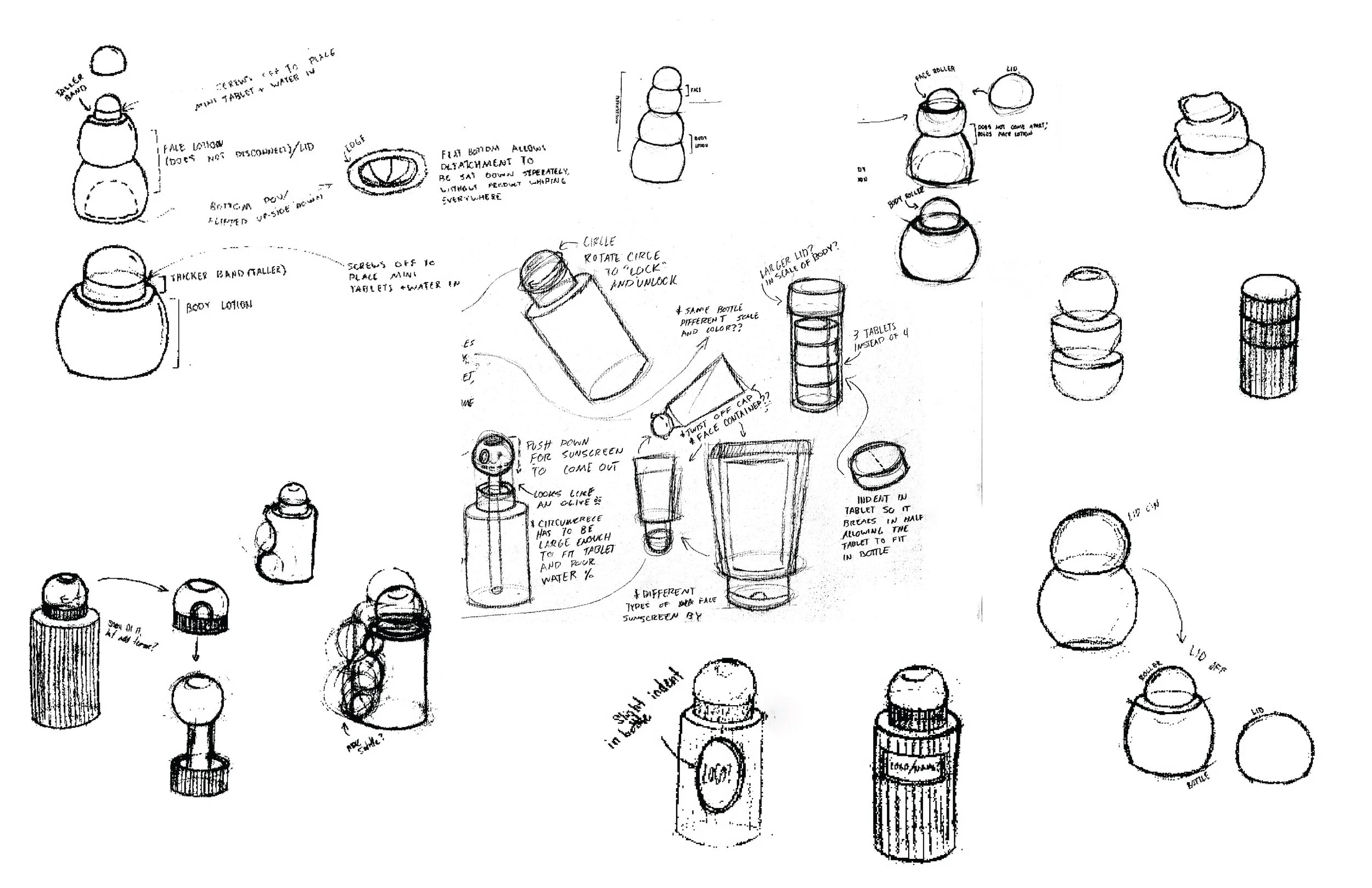 To design a sunscreen bottle with two compartments, each tailored for different needs: a gentle face formula with its own precise applicator and a body formula with a broader applicator, together creating one practical solution.